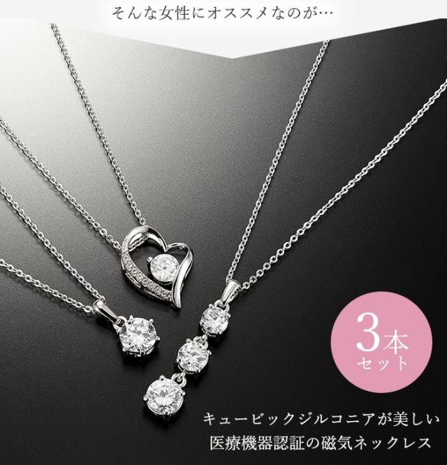 煌きのキュービックジルコニア(CZ)磁気ネックレス3本セット 磁気ネックレス レディース 女性用 おしゃれ かわいい 医療機器 女性 肩こりネックレス 肩凝り 肩こり解消 首こり おしゃれ かわいい 健康グッズ 強力 健康アクセサリー オフィス カジュアル 大人可愛い