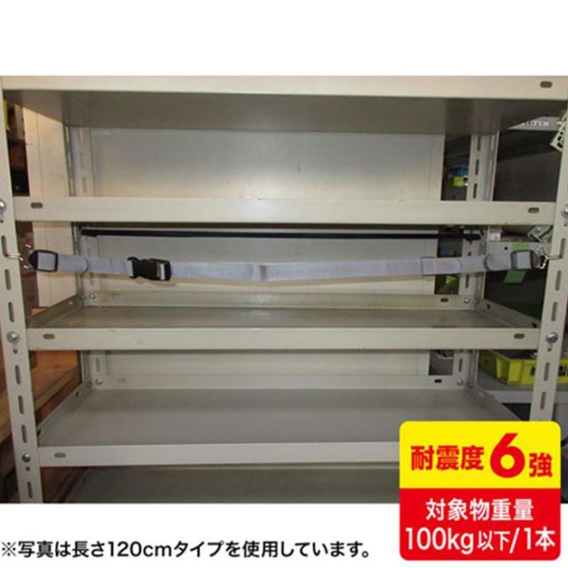 ■商品名:落下ストッパー フック式 180cm 什器用 落下防止ベルト 耐震ベルト 耐震グッズ 簡易設置 バックル付 便利 安心