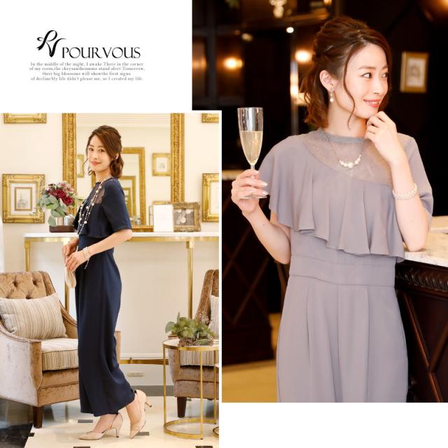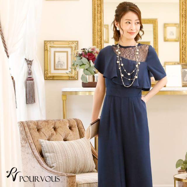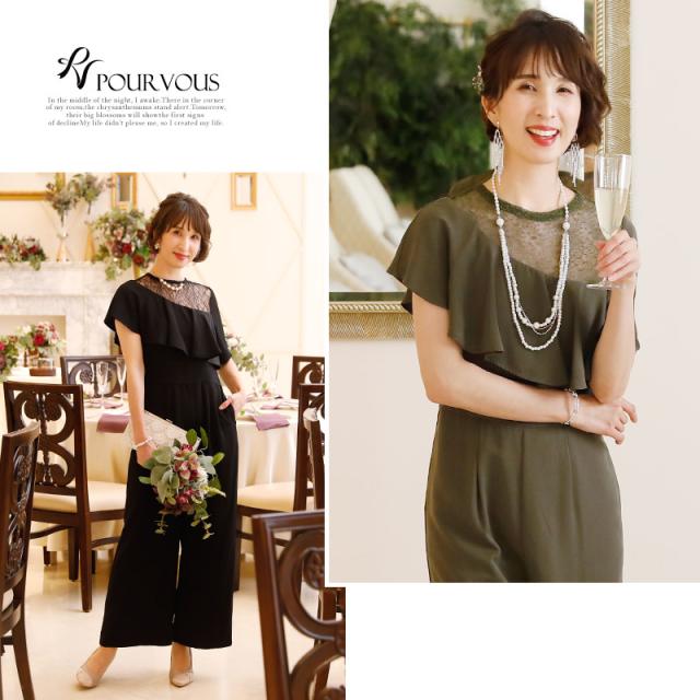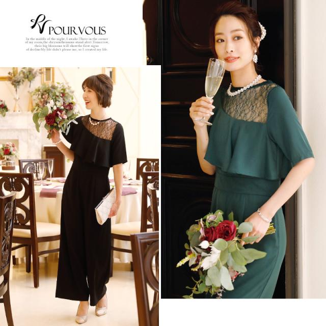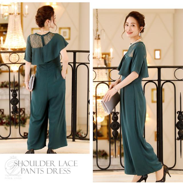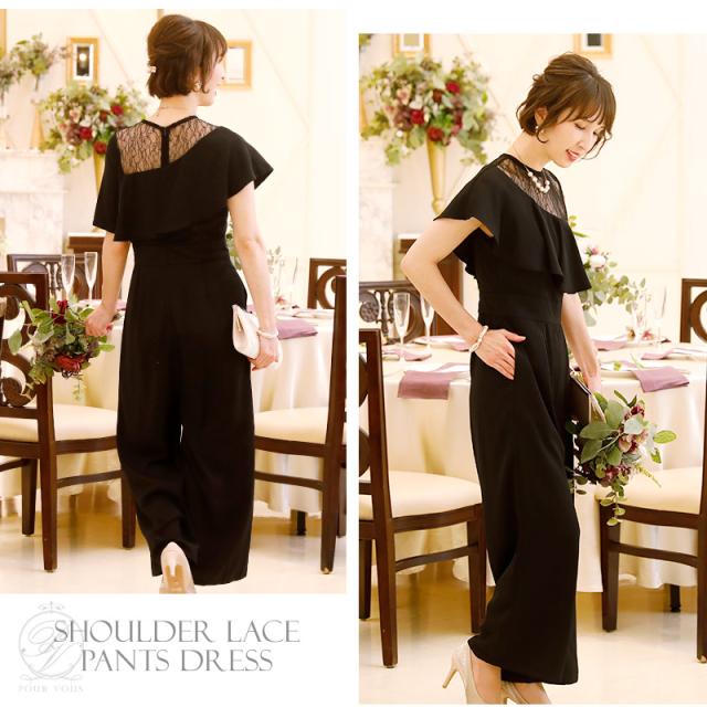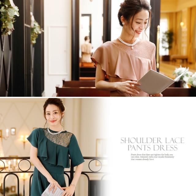 ショルダーレースパンツドレス【3781】10代・20代・30代・40代・50代パンツドレス・服装・袖あり・ドレスカジュアル・ブランド・半袖・袖付き・無地・脚長効果・伸縮性・キレイめ・着やせ・ロング・セットアップ・フリル・バイカラー・2カラー・レース・ネイビー・ブラック・ベージュ&ブラック・体型カバー・スタイルアップ・小さいサイズ・3Lや4L・かっこいい・即日発送・送料無料・結婚式・婚活・披露宴・顔合わせ・発表会・演奏会・二次会・同窓会・お呼ばれ・食事会・謝恩会・親族・七五三・お宮参り・冠婚葬祭・弔事・女子会・韓国・デート・入学式・卒業式・入園式・卒園式・ママ・ピアノ・マタニティー・セレモニー・セレブ・パーティー