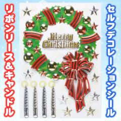 ウォールステッカー,クリスマスパーティー,パーティーグッズ,雑貨,クリスマス飾り,装飾,鏡,イベント,xmas,christmas,[4点セット] セルフデコレーションシール リボンリース&キャンドル,9682skey 4904922172714