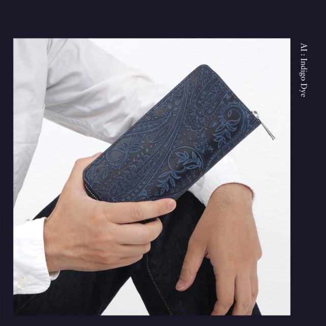 名称:BAGGY PORT/KOI ペイズリー柄藍染レザーラウンドファスナー長財布