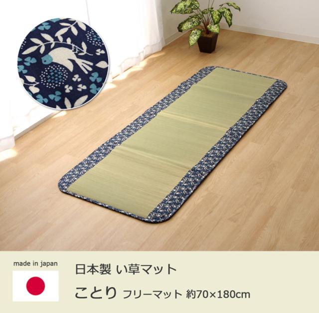 【日本産い草使用】い草マット ことり 70x180cm ネイビー 寝具 寝ござ 敷きパッド 日本製 国産 天然素材 い草 コットン メセキ織り 和風 抗菌 防臭 夏 夏用 和風 お昼寝 空気清浄 父の日ギフト
