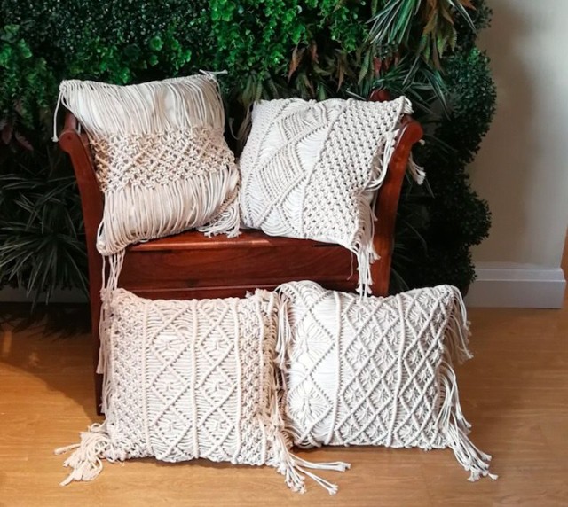 クッションカバー 45×45cm 北欧 白 ベージュ マクラメ編み 木綿糸 ボヘミアン調 西海岸 綿 フリンジ おしゃれ インテリア ソファ 4種