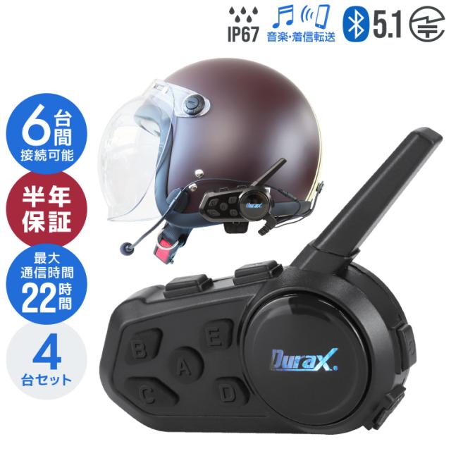 【半年保証】 インカム バイク バイクインカム 4台セット Durax イヤホンマイク インターコム Bluetooth ワイヤレス 無線機 通話 1000m通話 最大6人通話 防水 6 Riders Interphone-V6 ワイヤレスインカム ツーリング 人気 送料無料