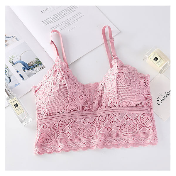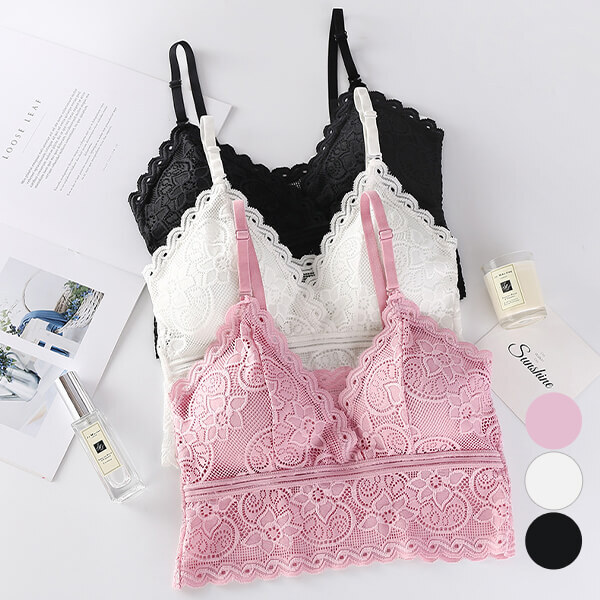 ●全3色!カップ入りスカラップレース花柄ハーフキャミソール