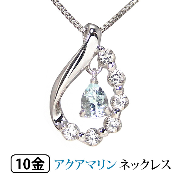 アクアマリン ネックレス K10WG 10k 10金 ホワイト ゴールド ホワイトトパーズ