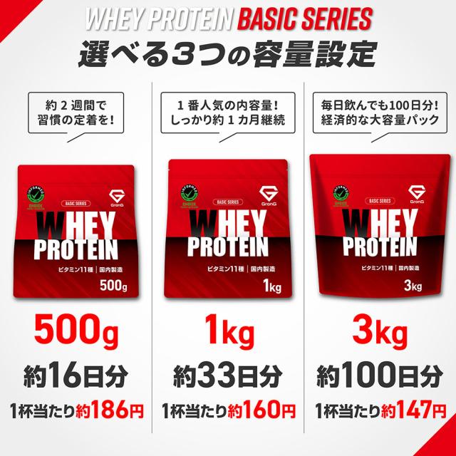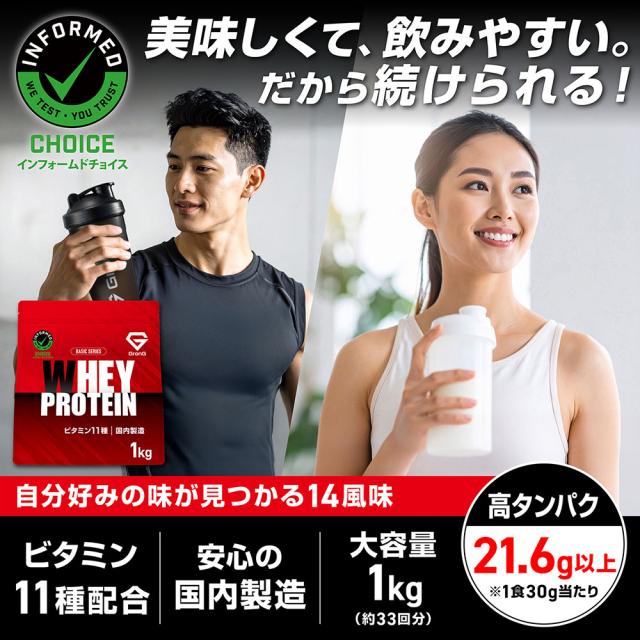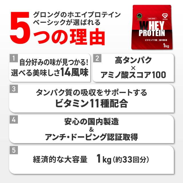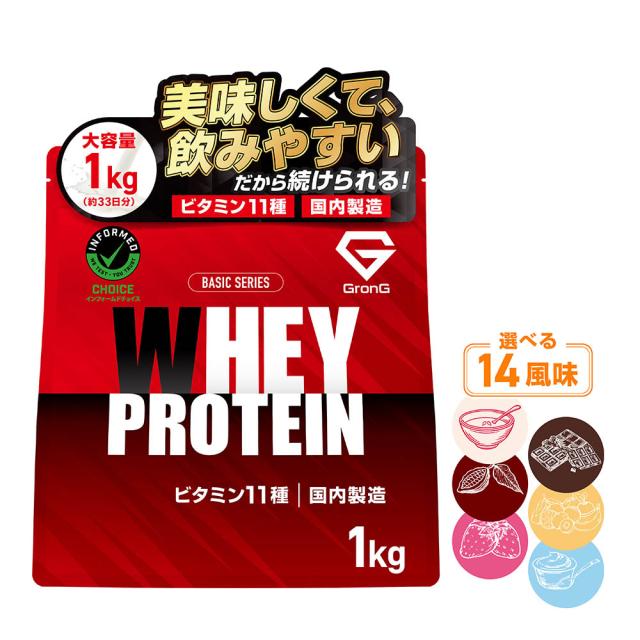 グロング プロテイン ホエイプロテイン 1kg ベーシック 風味付き ビタミン11種配合 GronG 置き換え ダイエット タンパク質 サプリメント アミノ酸スコア100 美味しい 送料無料