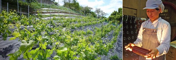 カタシモワイナリーのある柏原市は大阪随一のブドウの産地で、太平寺地区は聖武天皇が東大寺大仏(廬舎那仏)造立を思い立つきっかけとなった智識寺があった場所です。ブドウ農家古民家が立ち並び歴史的風情を残します。急斜面にブドウ畑が広がり、展望台からはあべのハルカスを含む大阪の街並みと大和川を望むことができます。自社農園で減農薬・有機肥料栽培するブドウは大阪府からエコ農産品として認定されています。ワイナリーの貯蔵庫は大正時代に建てられたもので、国の有形文化財に登録されています。