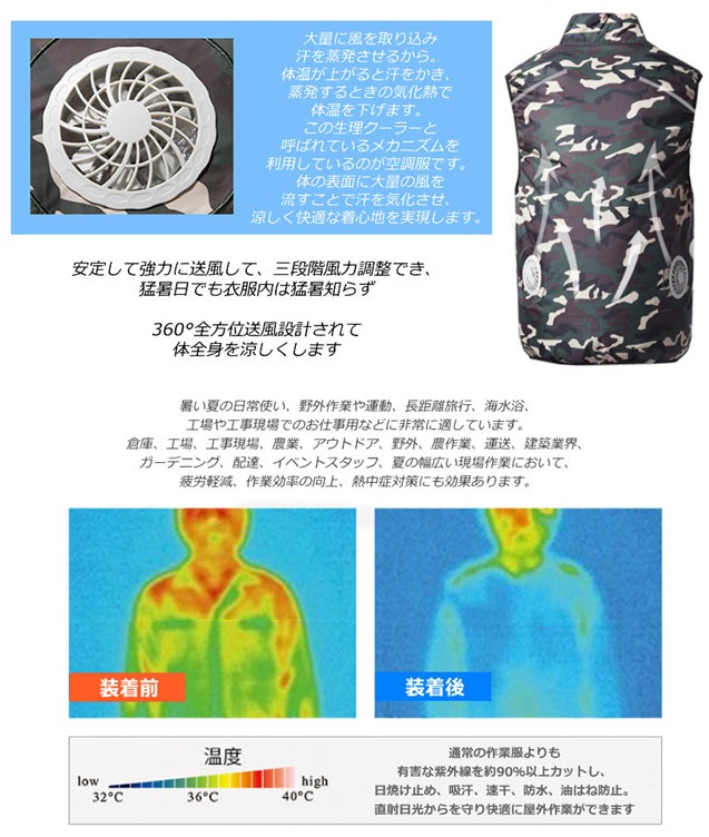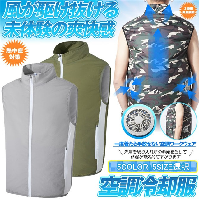 暑さ対策_b最安値挑戦!空調服 ベスト 迷彩 Lサイズ 空調作業服 ファン 熱中症対策 空調服作業着 大風量 クーラー 洗濯 UVカット 冷却服 アウトドア 現場