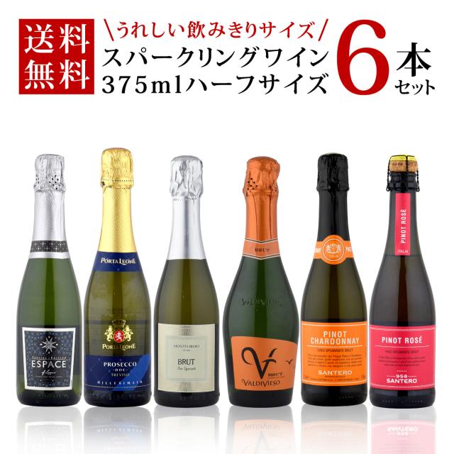 ワインセット セレクト スパークリング ワイン ハーフサイズ 6本セット 375ml ハーフボトル 泡 飲みきりサイズ