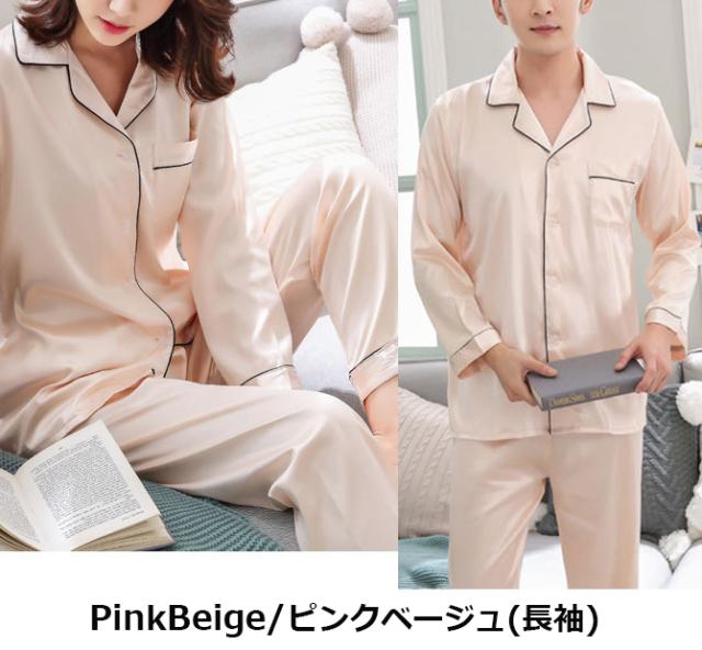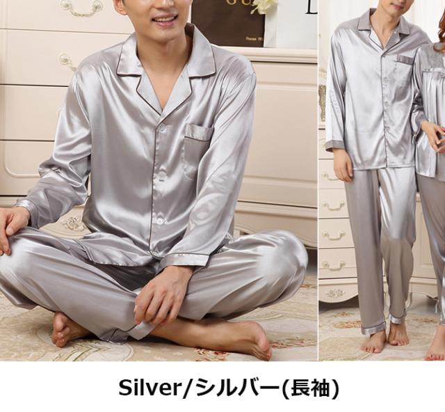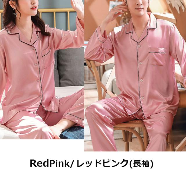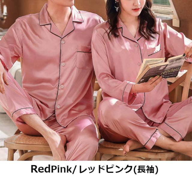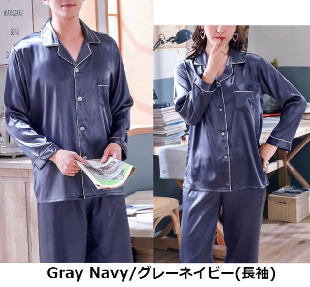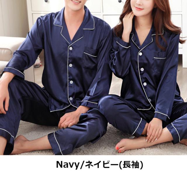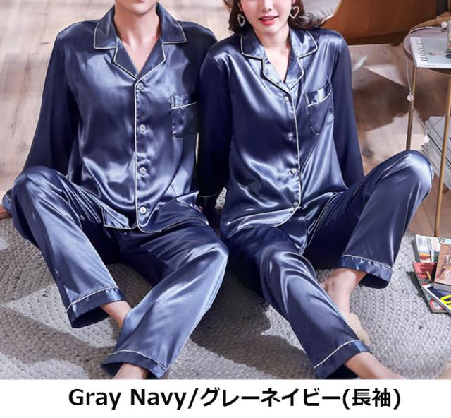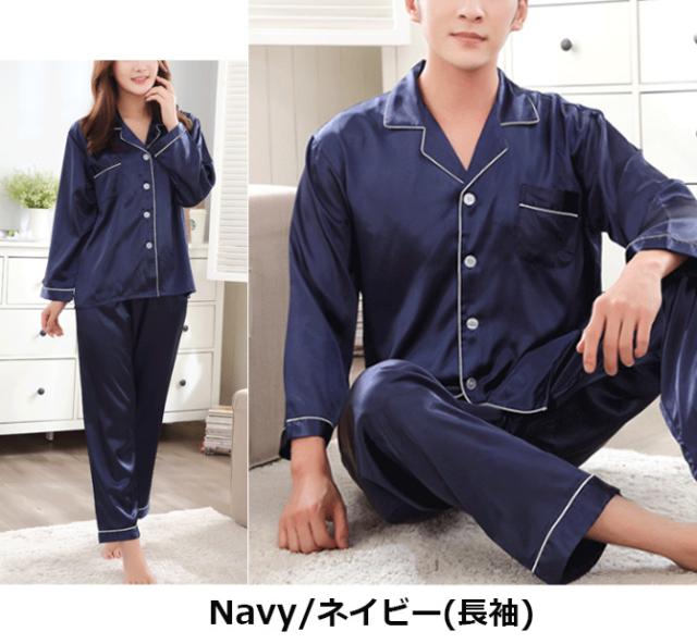 パジャマ 上下セット シルク調サテン地 ペアパジャマ メンズ レディース ナイトウェア 襟付き ルームウェア 寝巻 部屋着 ペアコーデ 新作