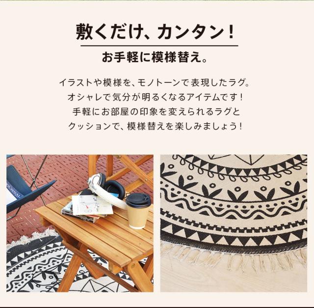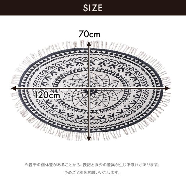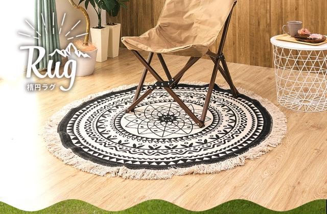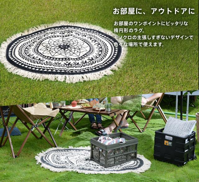 ラグ アウトドアラグ 120×70cm レジャーラグ 楕円形 モノトーン モノクロ 北欧 インド おうちキャンプ おうち時間 敷くだけ 屋内にも