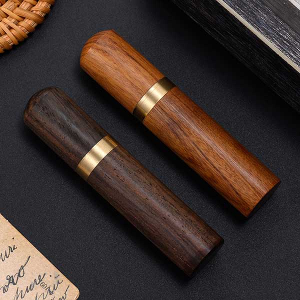 携帯用つまようじケース。色は、ブラウンとダークブラウンの2色です。