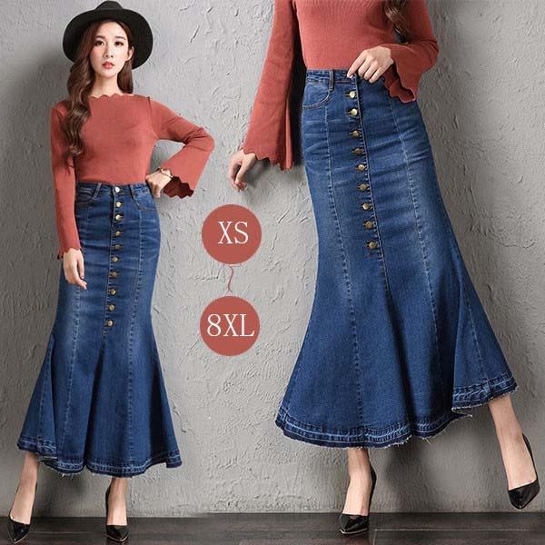 XS〜5XL/6XL/7XL/8XL レディース 大人 デニムスカート タイトスカート ロングスカート マーメイドスカート フレア ロング丈 ストレッチ 大きいサイズ 大人 カジュアル ハイウエスト 無地 可愛い セクシー 痩せる おしゃれdn110l6l6x0