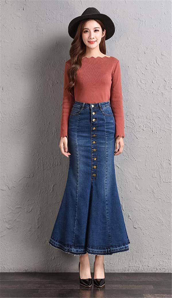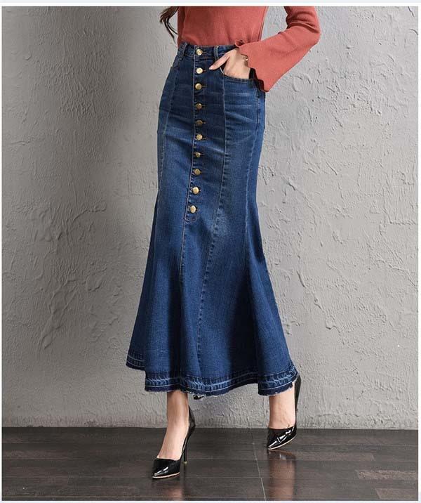 レディース 大人 デニムスカート タイトスカート ロングスカート マーメイドスカート 大人 カジュアル ハイウエスト