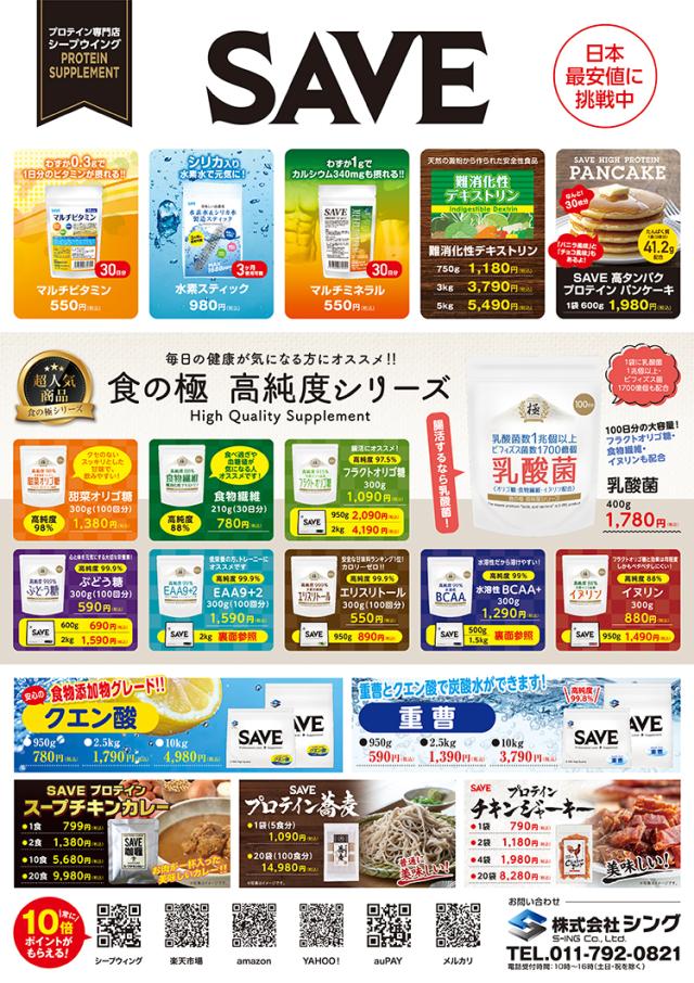 SAVEプロテインは、高タンパクプロテインはもちろん、国内工場にて製品化された安心プロテインです。美味しい成分は配合しておりませんので、ココアパウダーなどと混ぜて飲むと飲みやすくなります。