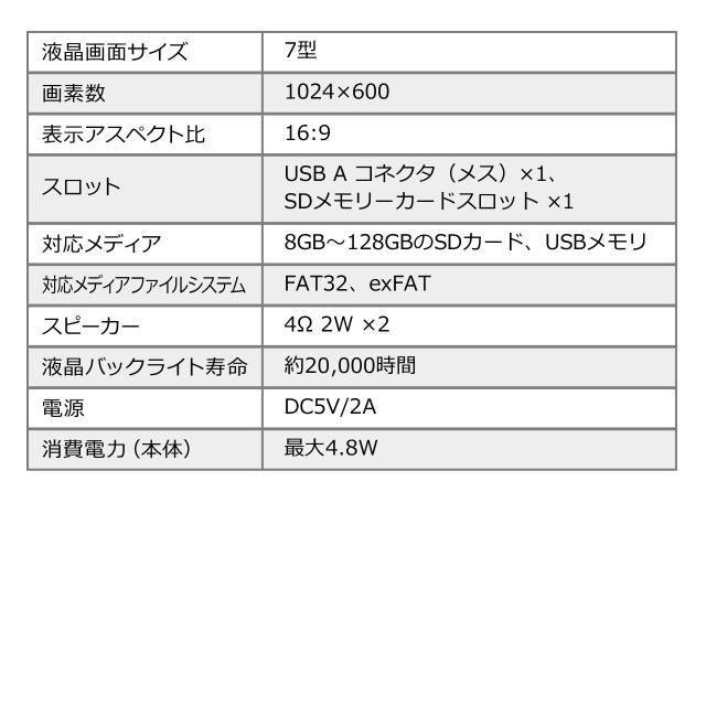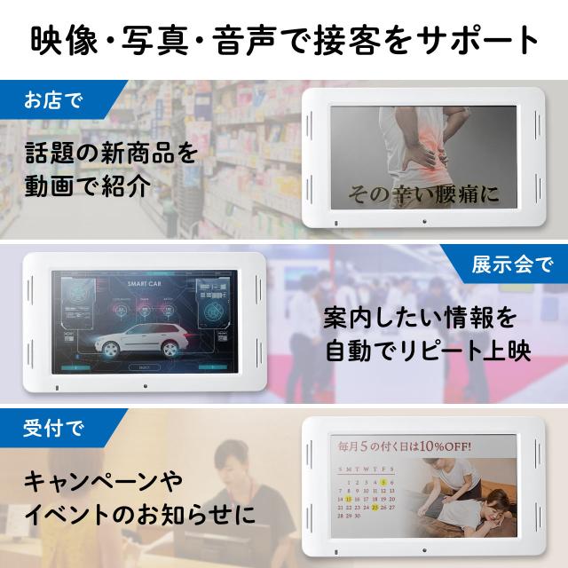 ⇒ご購入の前にご確認下さい映像、写真、音声で店頭での販促をサポート。SDカードに保存したデータを再生できる7インチ画面の電子POPモニター。【WEB限定商品】