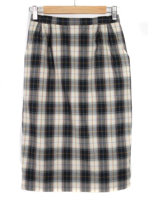 【中古】レリアン Leilian Arthur Bell スカート タイト チェック ウール 9 黒 ブラック ベージュ レディース