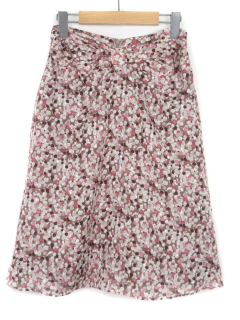 【中古】スーナウーナ Sunauna スカート フレア 総柄 リボン シフォン 38 ピンク レディース