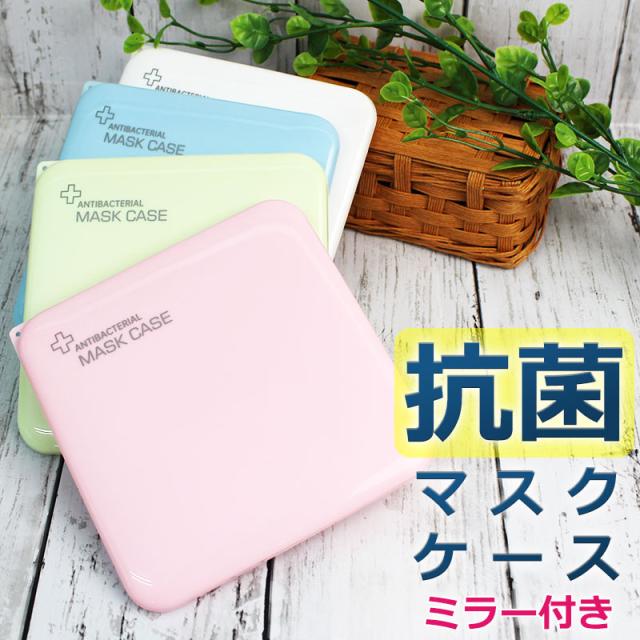 【値下げしました!】マスクケース 抗菌 鏡付き マスク入れ 携帯用 持ち運び 携帯用 ミラー付き ウイルス対策 ホワイト ピンク グリーン ブルー 食事中などに 即納
