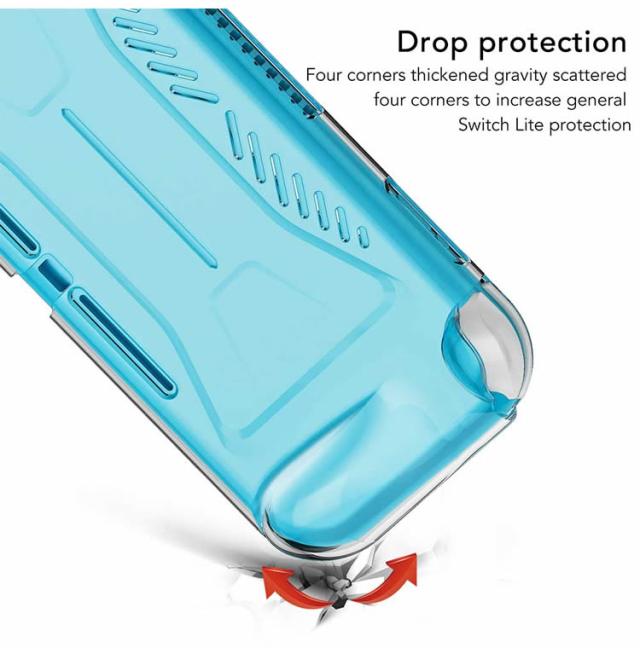 透明度の高い背面カバーが後ろからの衝撃を守り、Switch Lite本来の美しさを活かしたクリアソフトケース。