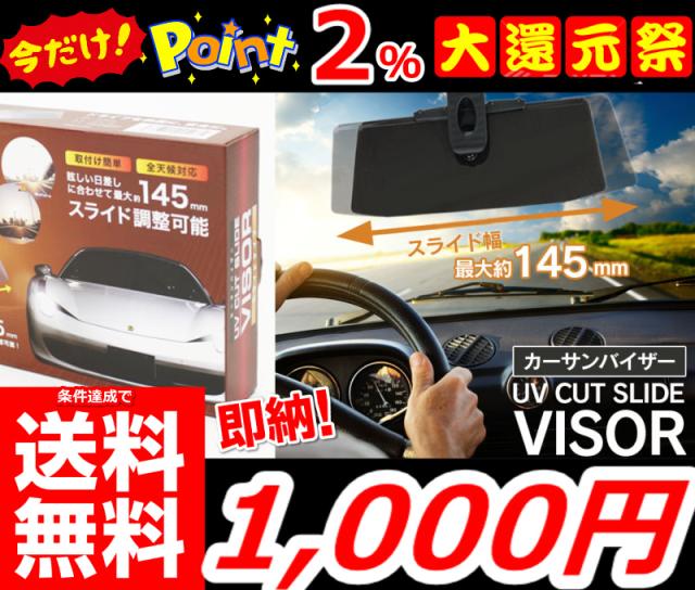 即納 更に今ならポイント2%還元中!! 条件達成で送料無料!!【クリップ式カーサンバイザー】サンバイザー ドライブ 日除け 日除け スライドタイプ