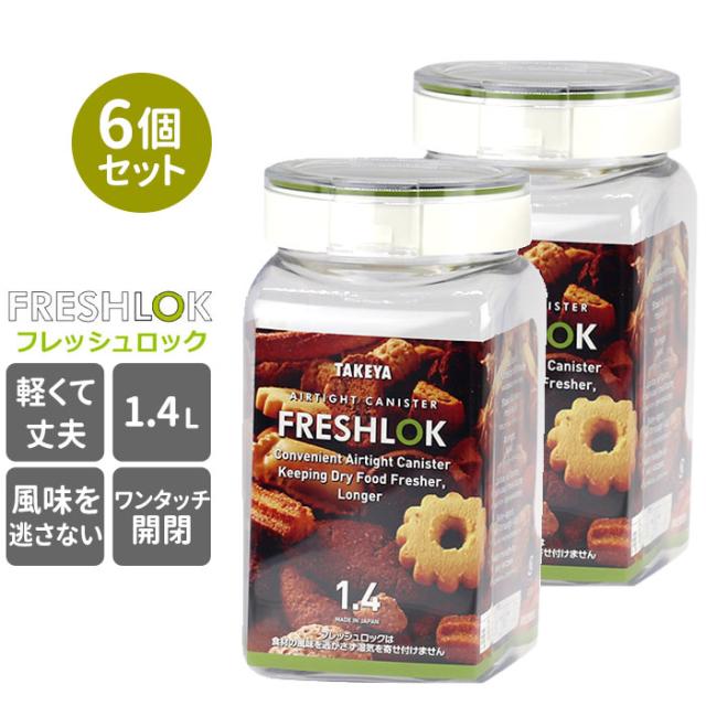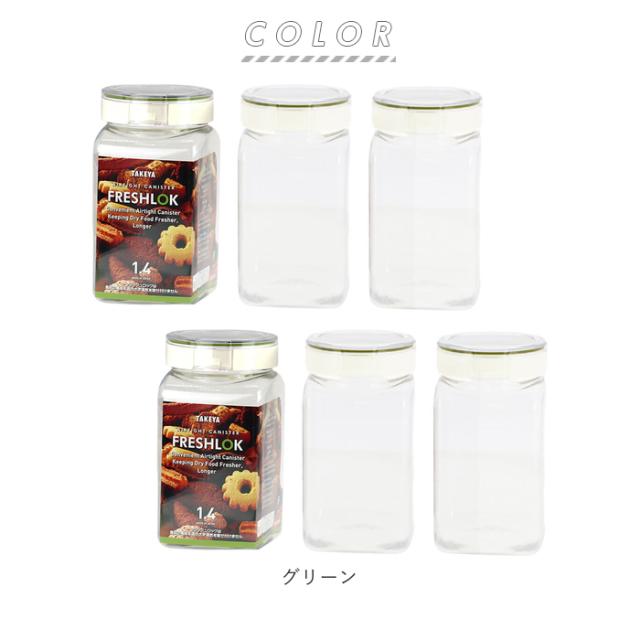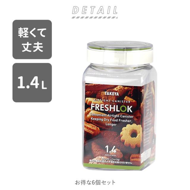 フレッシュロック セット 通販 FRESHLOK 角型 1.4L 6個セット 保存容器 おしゃれ プラスチック製 PET素材 緑 グリーン キッチン収納 調味料入れ 冷蔵庫収納 引き出し収納 調味料 粉物 パスタ キャニスター ストッカー TAKEYA タケヤ