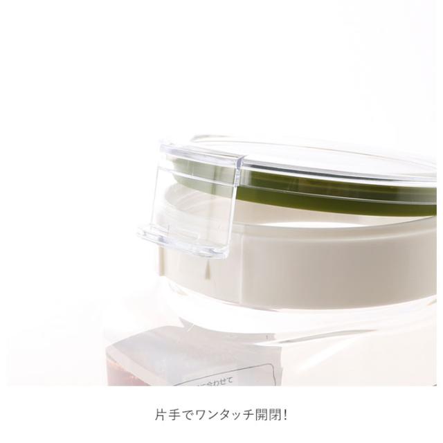| 商品説明 | ・軽くて丈夫、落としても割れにくい。衝撃に強く汚れにくい本体。安心の日本製。お得な6個セット。 ・片手でワンタッチ開閉!広口タイプで取り出しやすい。 ・上部も透明なので寝かせてストックしても中身が見えやすい。 ・一体型シリコンパッキンの蓋で風味を逃さない高気密性を実現。湿気を遮り食品類の保存に最適。 ・パッキンは取り外せるのでいつでも洗えて衛生的。(※食器洗い乾燥機は非対応) ・砂糖(1kg)/塩(1.6kg)/小麦粉(900g)/パン粉(220g)/お茶パック(21個)など色々収納可能! ・自由に書けるラベルシート付き。 |