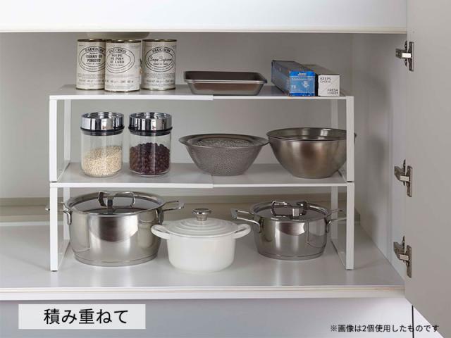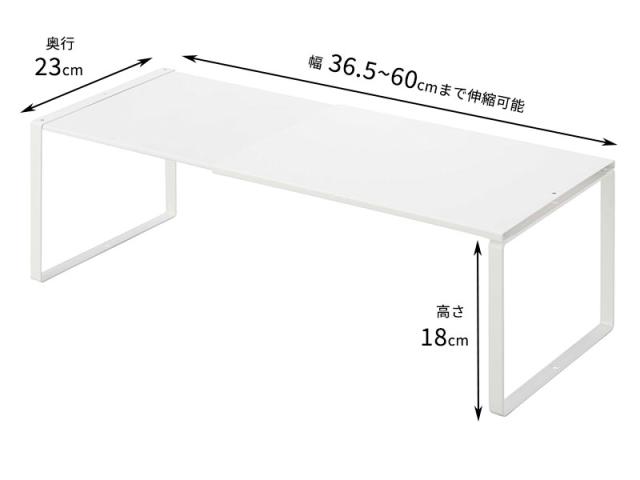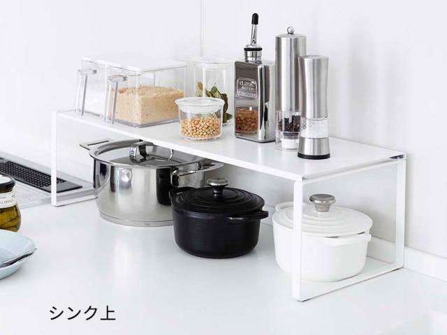 山実 yamazaki シンク下 流し下 棚 ラック スタンド 収納 保管 鍋 ザル フライパン 調理道具 調理器具 伸縮可能 吊戸棚 食器棚 積み重ね スタッキング キッチン 台所 洗面台 洗面所 脱衣所 リビング 寝室 クローゼット 幅36.5 奥行23 高さ18 センチ cm 耐荷重3kg スチール製 簡単組み立て 空間活用 デッドスペース 有効活用 シンプル スリム スマート コンパクト 省スペース すっきり 片付く rack shelf stand pile up 白 4903208038294