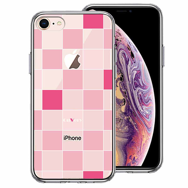 iPhone 8 7 ケース ハードケース ハイブリッド クリア ブロック チェック ピンク