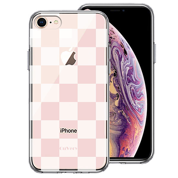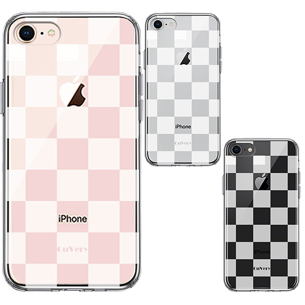 iPhone 8 7 ケース ハードケース ハイブリッド クリア 半透明 チェック ホワイト