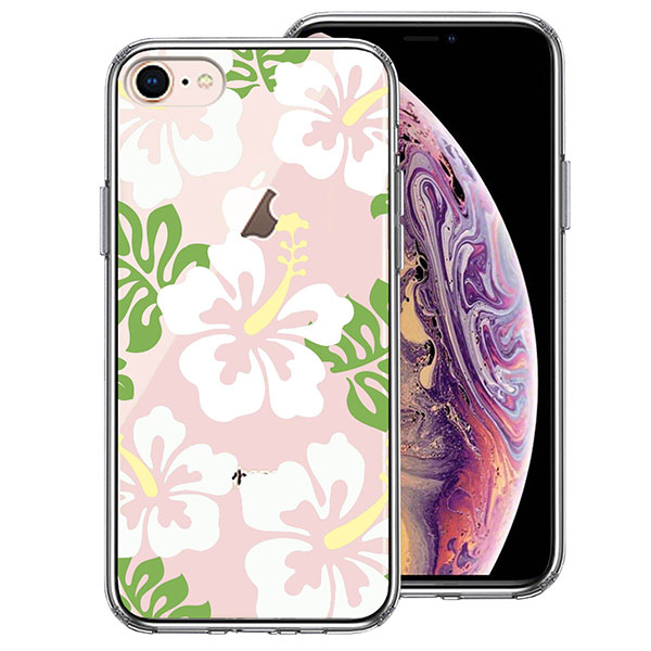 iPhone 8 7 ケース ハードケース ハイブリッド クリア ハイビスカス ホワイト