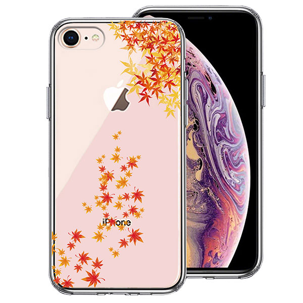 iPhone 8 7 ケース ハードケース ハイブリッド クリア 季節 紅葉 もみじ 秋