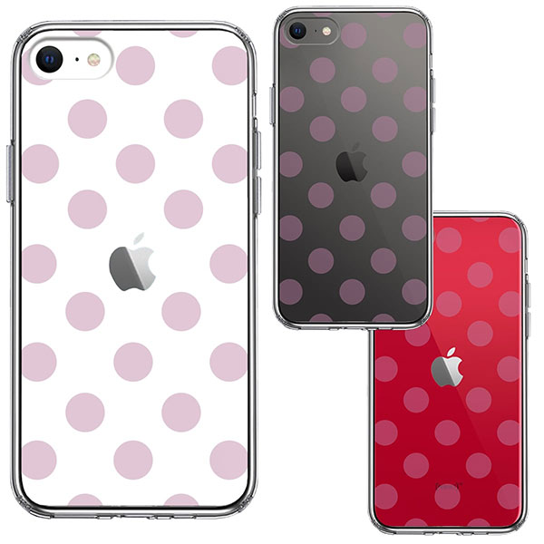 iPhone SE 第3世代 第2世代 SE3 SE2 ケース ハードケース ハイブリッド クリア 水玉 パープルピンク