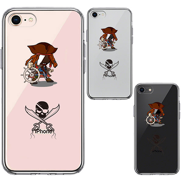 iPhone8 ケース ハードケース ハイブリッド クリア 海賊 帆船 スカル
