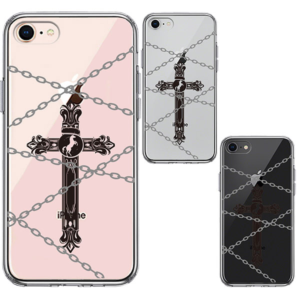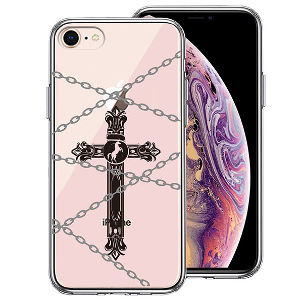 iPhone 8 7 ケース ハードケース ハイブリッド クリア クロス &チェーン