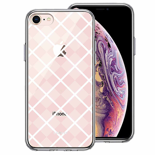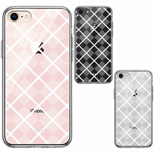 iPhone 8 7 ケース ハードケース ハイブリッド クリア 格子柄 アペンド チェック 白