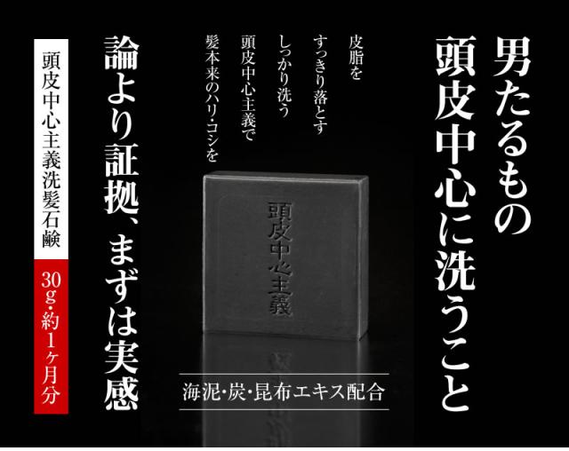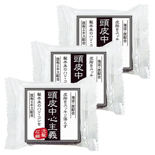 頭皮中心主義 洗髪石鹸 30g 3個セット 海泥・炭・昆布エキス配合 無着色・シリコンフリー メール便送料330円(5組まで) 代金引換・日時指定不可【12/23(火)9時まで レビューを書いてポイント+3%】