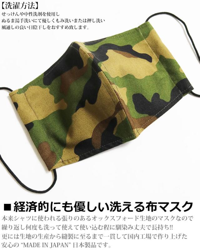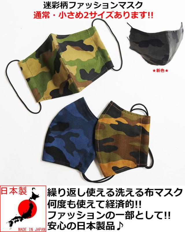 カモフラ マスク 迷彩柄 迷彩マスク 日本製 布マスク 洗える ミリタリー かっこいい オシャレ 大人用 小さめ 大きめ 黒ゴム 春 夏 秋 冬