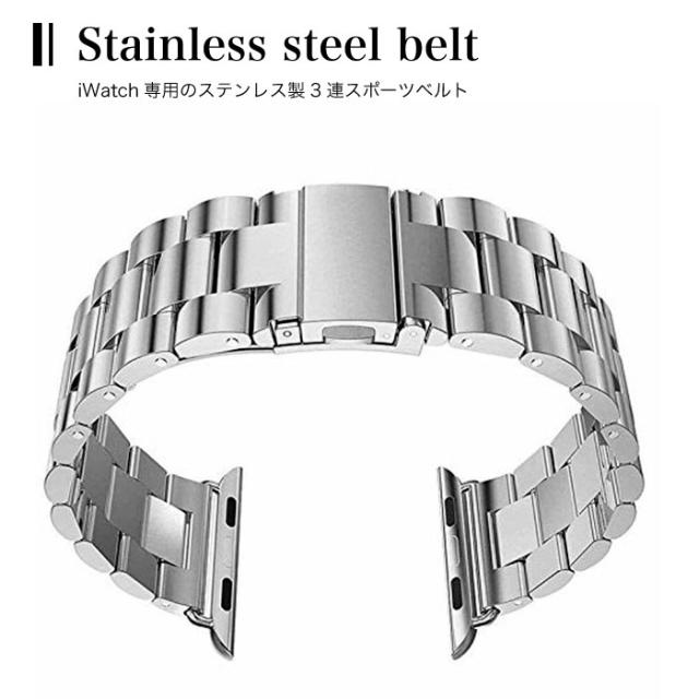 Apple Watch アップルウォッチ バンド ステンレス3連ベルト 38mm 42mm 40mm 44mm iWatch 1 2 3 4 5 ベルト交換 時計 時計ベルト おしゃれ メンズ レディース 替えベルト