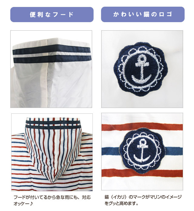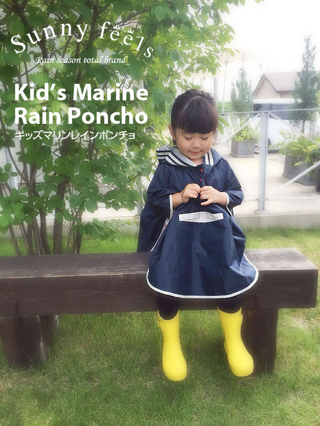 【sunny feels】キッズ マリンレインポンチョ【サニーフィールズ レインウェア レディース ボーダー 自転車 通勤 ポンチョ 可愛い かわいい マリン レイン 雨具 子供用 キッズ レインポンチョ】