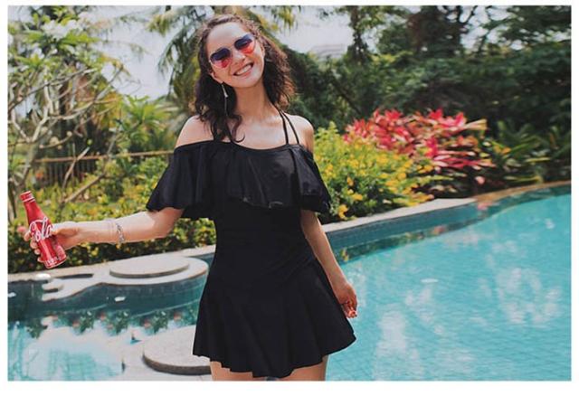 水着 レディース 体型カバー ワンピース 水着 黒 無地 ワンピース フリル バンドゥ 水着 レディース 温泉 ワイヤー オフショルダー 韓国風 大人 水着 ワンピース セクシー df158w3w3x0