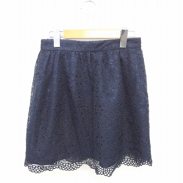 【中古】リランドチュール Rirandture スカート フレア ミニ 刺繍 総柄 バックジップ 1 紺 ネイビー /TT10 レディース