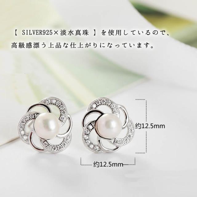 【 SILVER925×淡水真珠×ジルコン 】を使用しているので、高級感漂う上品な仕上がりになっています。