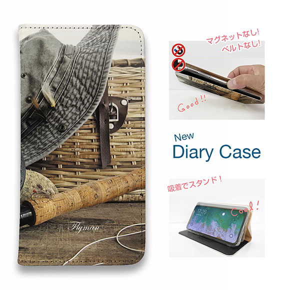 スマホケース 手帳型 ベルトなし マグネットなし iPhone17 Pro Max iPhone Air iPhone16e Pro Max 16 Plus 15 Pro Max 14 Plus Xperia 10 VII Galaxy AQUOS Pixel10 Pro XL 釣り 魚 ルアー flyman