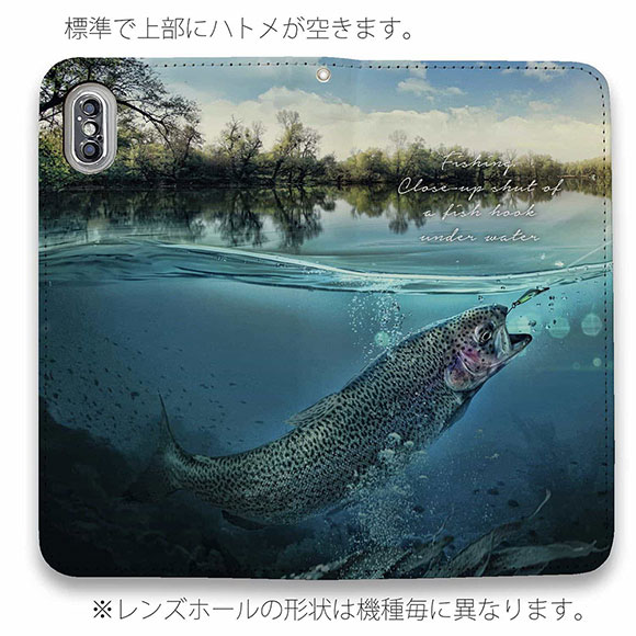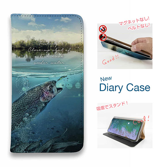 スマホケース 手帳型 ベルトなし マグネットなし iPhone17 Pro Max iPhone Air iPhone16e Pro Max 16 Plus 15 Pro Max 14 Plus Xperia 10 VII Galaxy AQUOS Pixel10 Pro XL 釣り 魚 ルアー 水中でニジマスが掛かった瞬間