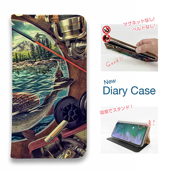 スマホケース 手帳型 ベルトなし マグネットなし iPhone17 Pro Max iPhone Air iPhone16e Pro Max 16 Plus 15 Pro Max 14 Plus Xperia 10 VII Galaxy AQUOS Pixel10 Pro XL 釣り 魚 ルアー 釣具たちに囲まれて
