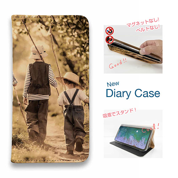 スマホケース 手帳型 ベルトなし マグネットなし iPhone17 Pro Max iPhone Air iPhone16e Pro Max 16 Plus 15 Pro Max 14 Plus Xperia 10 VII Galaxy AQUOS Pixel10 Pro XL 釣り 魚 ルアー 少年の日々