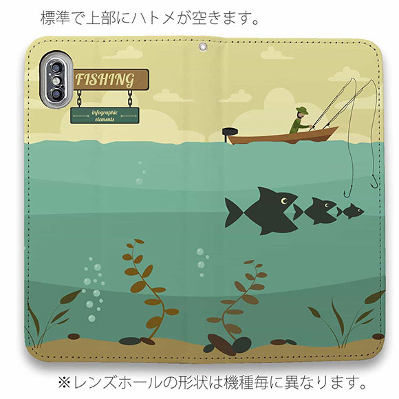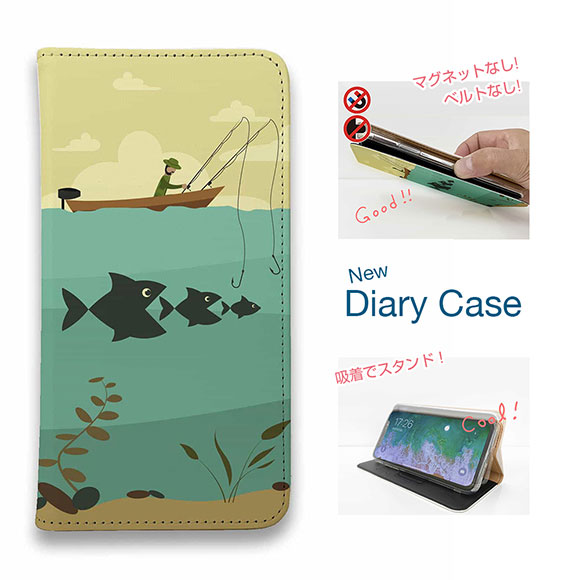 スマホケース 手帳型 ベルトなし マグネットなし iPhone17 Pro Max iPhone Air iPhone16e Pro Max 16 Plus 15 Pro Max 14 Plus Xperia 10 VII Galaxy AQUOS Pixel10 Pro XL 釣り 魚 ルアー Fishing on the boat イラスト