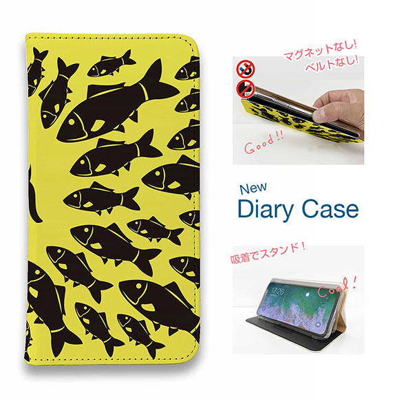 スマホケース 手帳型 ベルトなし マグネットなし iPhone17 Pro Max iPhone Air iPhone16e Pro Max 16 Plus 15 Pro Max 14 Plus Xperia 10 VII Galaxy AQUOS Pixel10 Pro XL 釣り 魚 ルアー イエローサブマリ